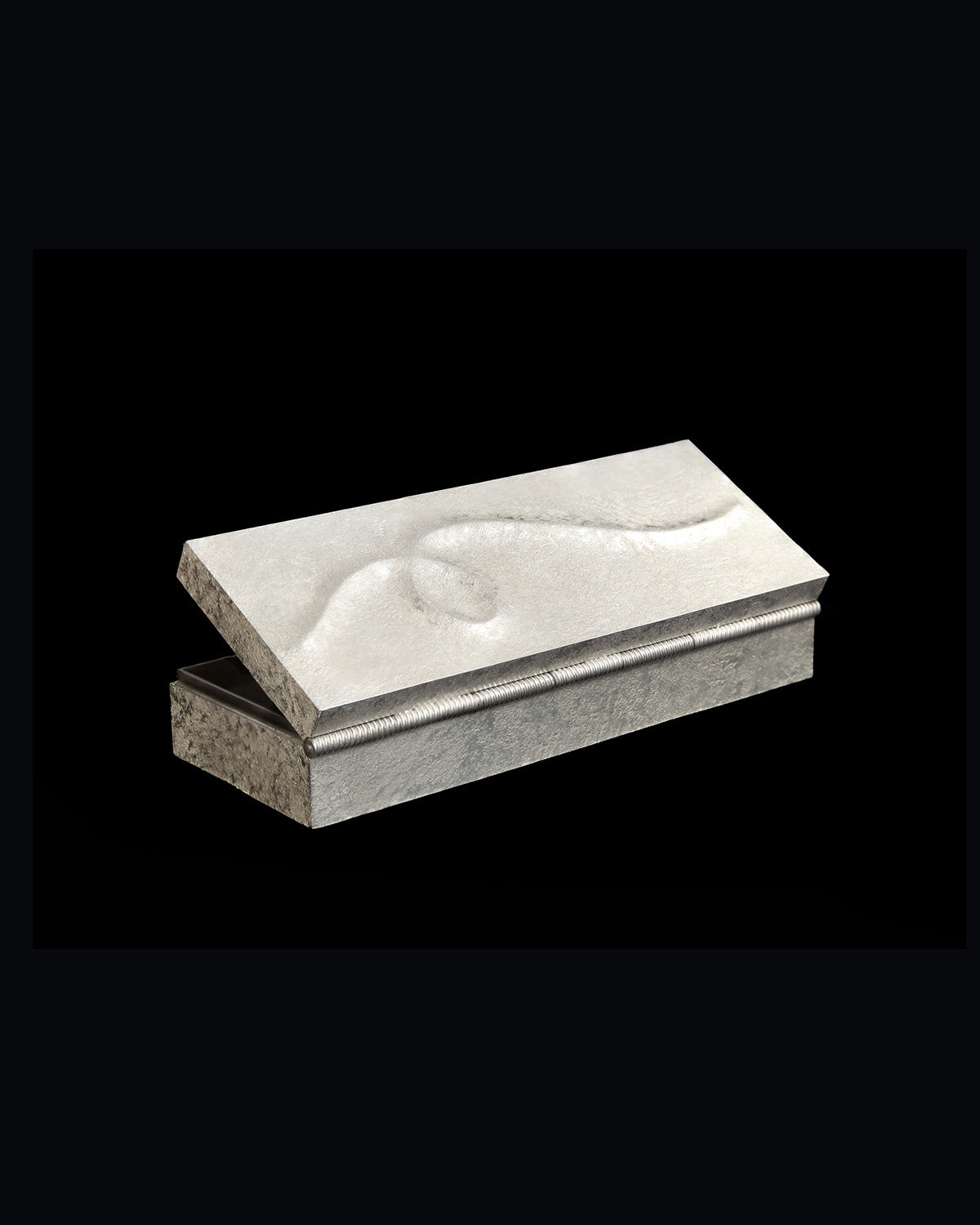 Designing based on a nostalgic response to archived artefacts, Monica combines traditional silversmithing techniques with innovative components and surface texture to create contemporary metalwork that questions the interrelation between memory and object. Throughout her body of work, low-relief motifs and intricate wirework replicate and emulate inscribed memories while embossed traces convey the absence of passing objects that once were in contact with the surface. Bringing together storytelling and archaeology, Monica explores tangible remains and their surface qualities as important signifiers or touchstones of memories both ancient and modern.